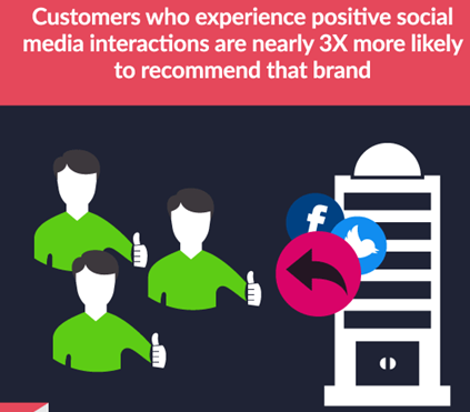 Overweeg de bovenstaande statistiek -- degenen die positieve interacties met een merk op sociale media ervaren, hebben 3 keer meer kans om dat merk aan hun vrienden en familie aan te bevelen.