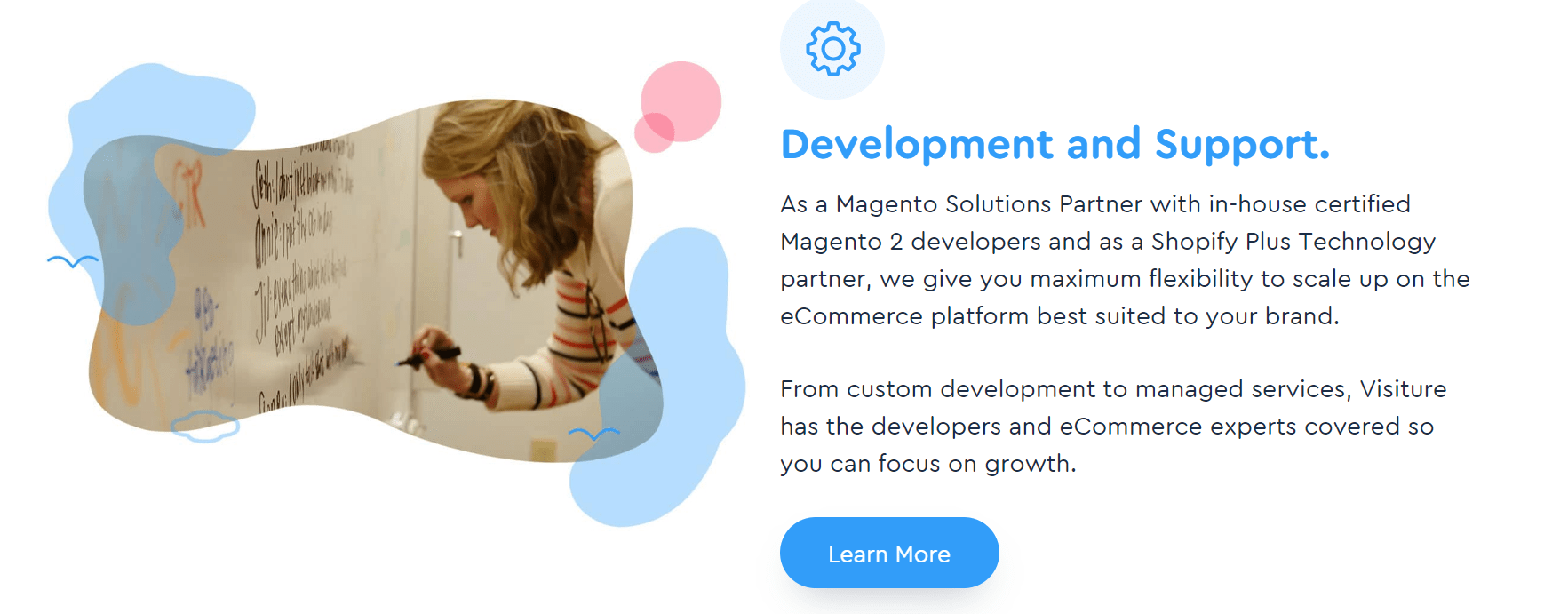 Bovendien benadrukt het bureau ook dat ze een Magento Solutions Partner en Shopify Plus Technology partner zijn, wat hen zeker zal helpen om hun doelgroep aan te spreken: