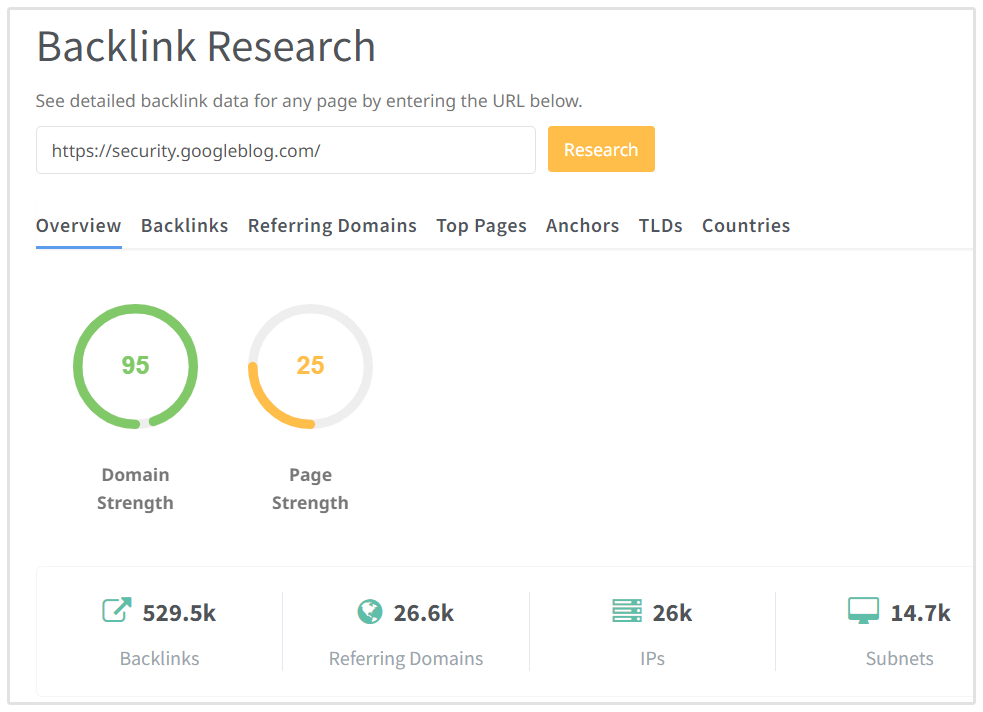 Hoewel Page Strength een metric van derden is en niet relevant voor Google's SERP's, kan het je helpen de kwaliteit van een backlink te beoordelen door te analyseren hoeveel moeite de webmaster tot nu toe in hun website heeft gestoken.
