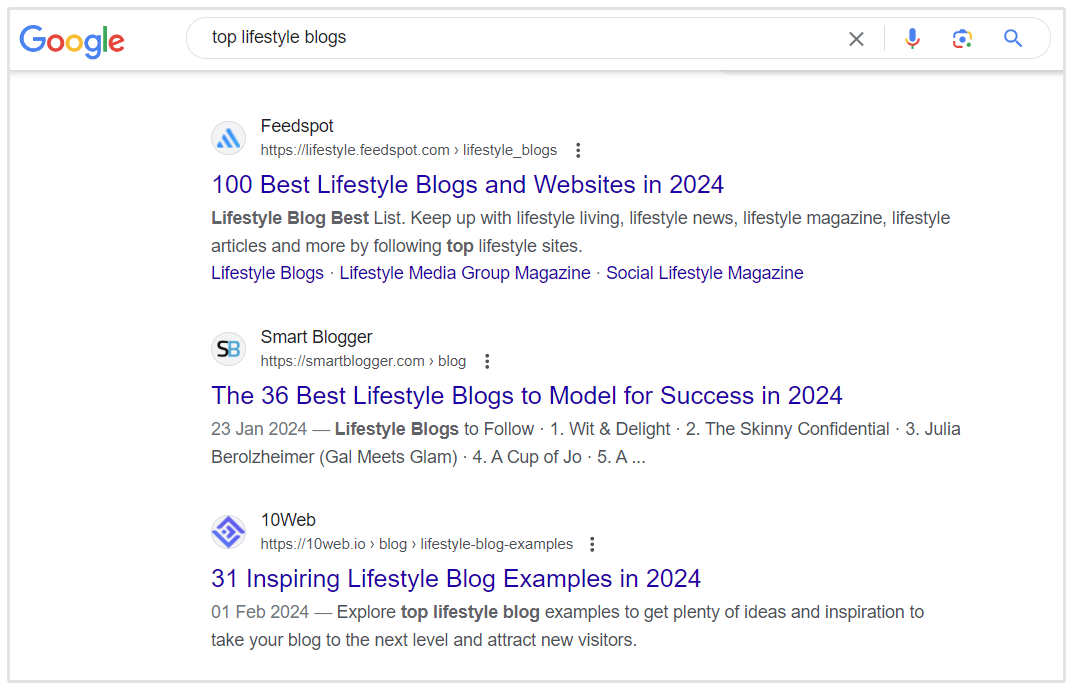 Beoordeel vervolgens de hoogst gerangschikte resultaten—dit zijn je concurrenten. Bezoek elke pagina en maak een notitie van: