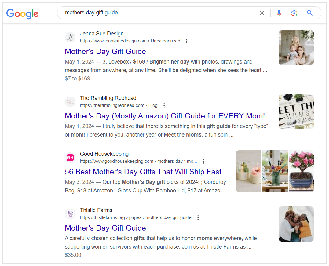 Laten we gaan met "moederdag cadeau-ideeën" als een voorbeeld.