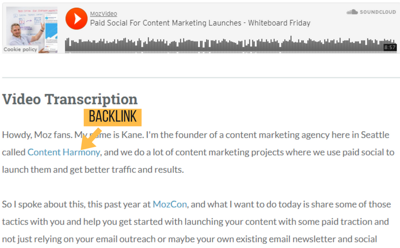 - Ingebed in een video — Als je een video kunt maken die mensen willen delen en naar willen linken, kun je een link naar je site in die video inbedden, wat telt als een backlink.