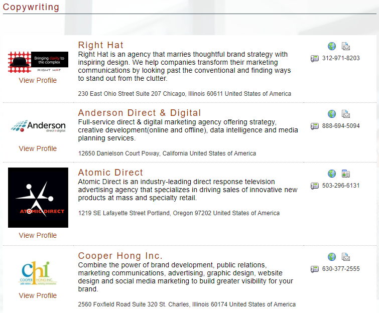 Andere vergelijkbare opties zijn de Direct Marketing Directory en de Content Marketing Institute Business Directory.