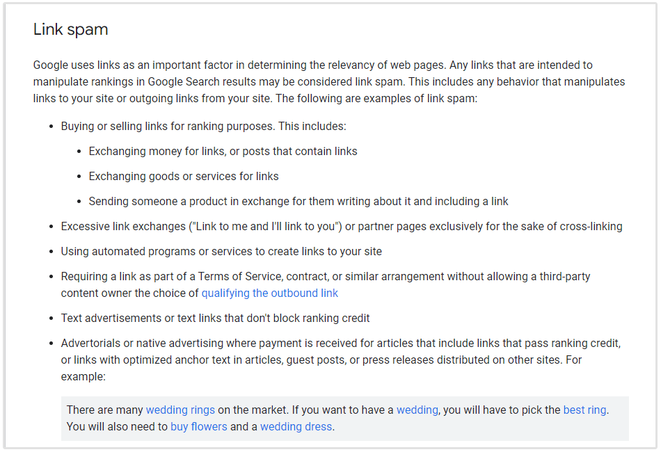 Er zijn enkele gevallen waarin een link voor betaling een acceptabele uitwisseling kan zijn, bijvoorbeeld betaalde advertentieruimte op een website of online publicatie. Dat soort dingen is helemaal prima—mits de site natuurlijk zeer relevant is voor die van jou.