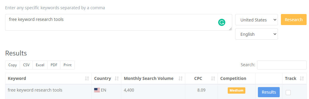 Onthoud, je wilt je richten op zoekwoorden met lage concurrentie, dus in plaats daarvan kun je content maken die specifiek gericht is op “gratis zoekwoordonderzoek tools voor seo”, wat een “lage” mate van concurrentie heeft.