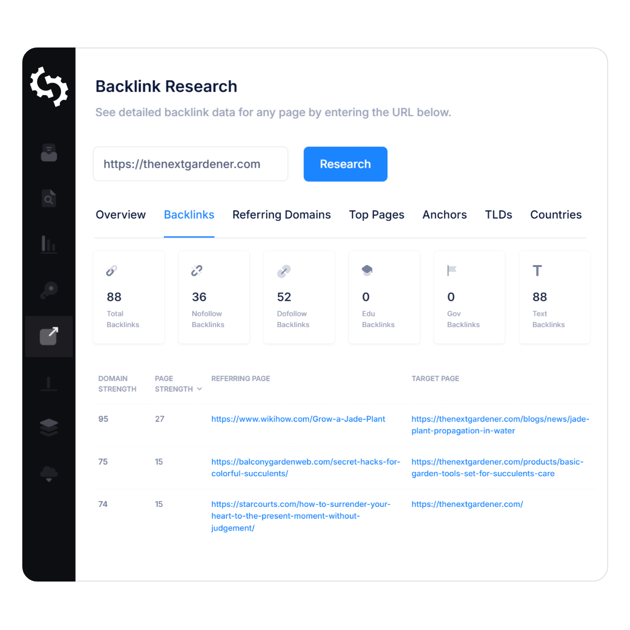 Onze Backlink Onderzoek tool geeft je duidelijk inzicht in het linkprofiel van elke site, waardoor het een sterk alternatief is voor backlinkanalyse.