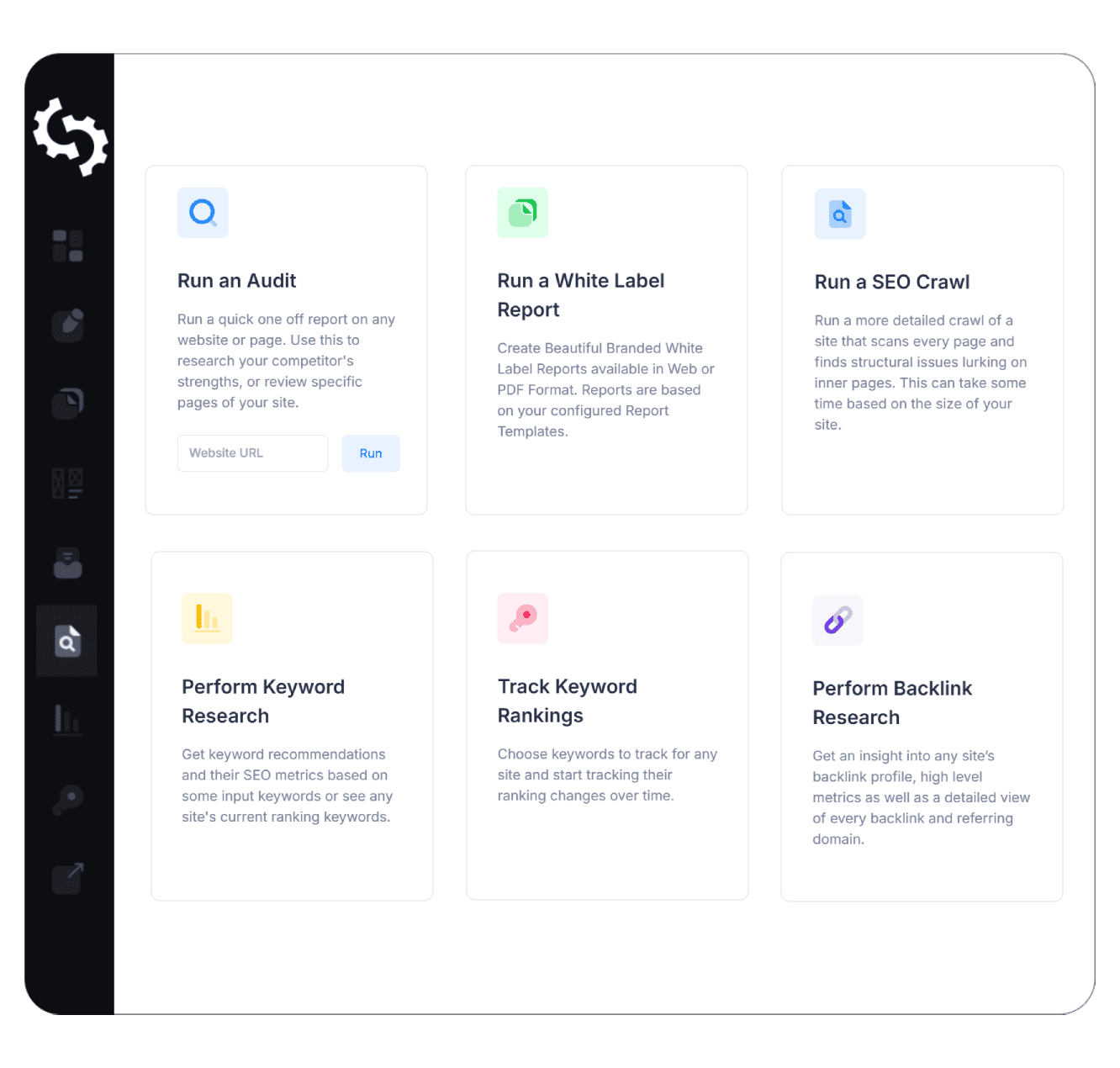 Van website-audits en zoekwoordgegevens tot backlink-inzichten, ranglijsten en rapportage, elke laag bevat de functies die het meest belangrijk zijn.