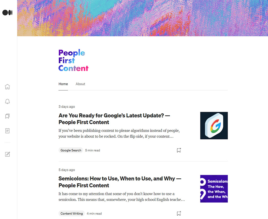 Medium stał się popularnym miejscem dla agencji do publikowania artykułów z przemyśleniami. Korzyścią z publikowania na Medium jest wbudowana społeczność i aspekt odkrywania. Ale wadą jest to, że twoja strona internetowa nie jest gospodarzem tej treści i tracisz potencjalne korzyści SEO. Twój artykuł na Medium może nadal pojawiać się w wyszukiwaniu, ale jeśli jest wysokiej jakości i przyciąga linki zwrotne, te linki będą bezpośrednio wskazywać na Medium.