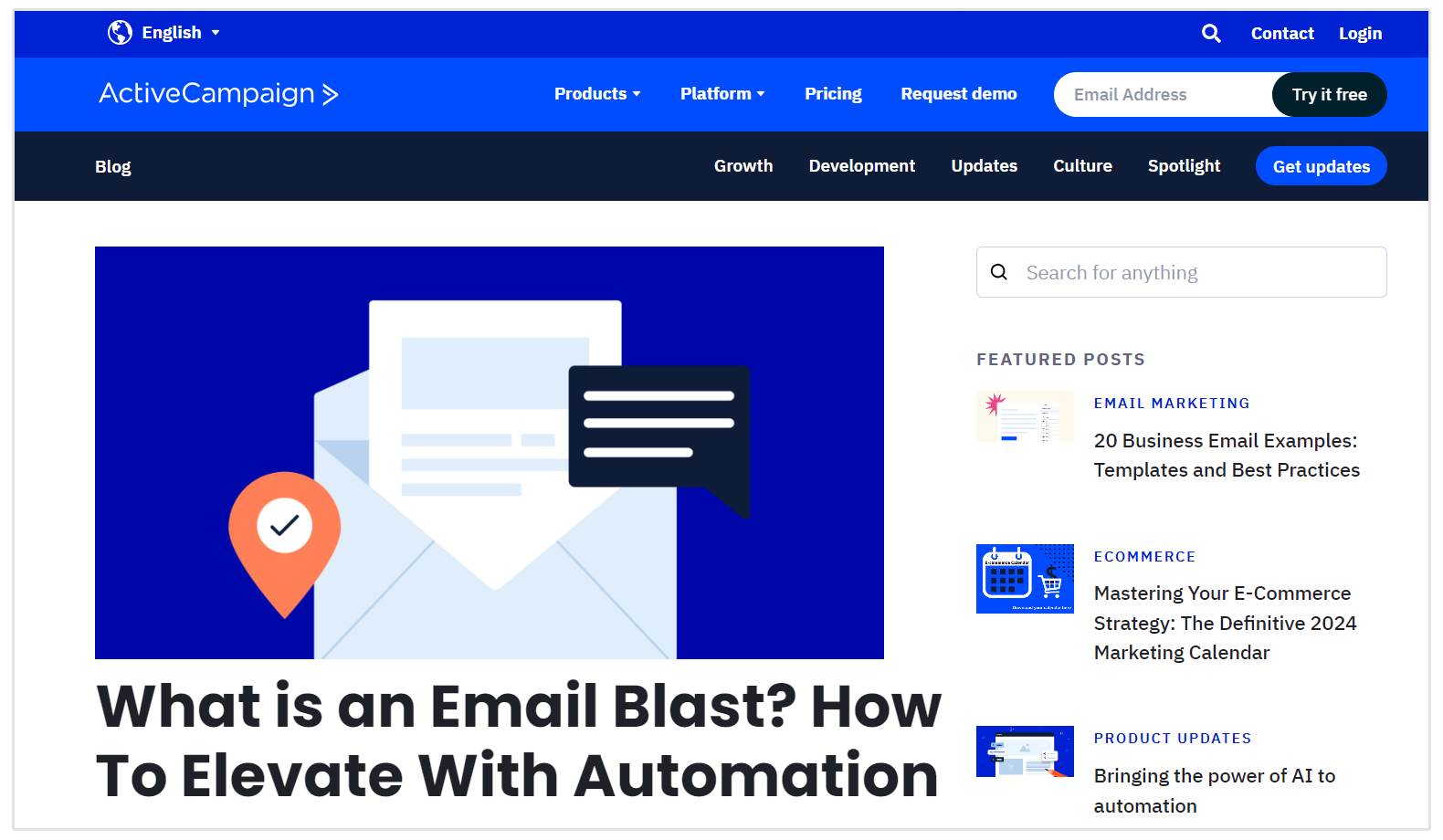 Na przykład, ActiveCampaign to strona, która ma dużo istotnych tematycznie treści w przestrzeni marketingu emailowego. Wynika to z faktu, że są bardzo skoncentrowani na tworzeniu wysokiej jakości treści, które są relewantne dla tej niszy na tematy takie jak "Najlepsze Narzędzia do Email Marketingu", "Przykłady Generowania Leadów Emailowych" itp.