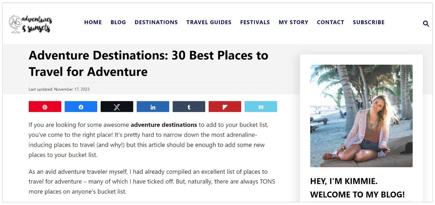 Na przykład, wyobraźmy sobie, że prowadzisz bloga o podróżach poświęconego przygodowym kierunkom podróży.