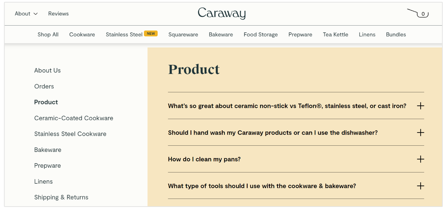 Caraway to sklep internetowy specjalizujący się w ceramice użytkowej. Ich strona z FAQ jest wypełniona pytaniami, które potencjalni lub stali klienci mogą mieć odnośnie ceramiki użytkowej.
