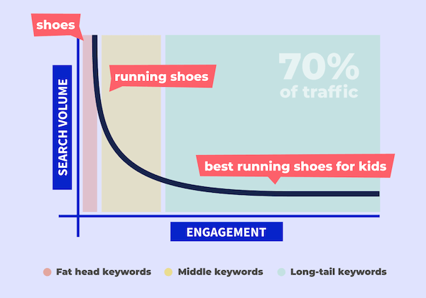 Biorąc przykład ze sklepu z zabawkami powyżej, słowa kluczowe typu long-tail mogą obejmować "Najlepsze zestawy do zabawy na zewnątrz do małych ogrodów" pod "Wyposażenie do zabawy na zewnątrz" lub "Najlepiej oceniane gry planszowe na rodzinny wieczór gier" pod "Gry planszowe".