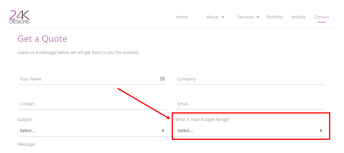 Szybka dygresja: Jeśli martwisz się o marnowanie czasu na klienta bez budżetu, łatwym rozwiązaniem jest dodanie pytania kwalifikacyjnego w formularzu generowania leadów. Oto przykład: