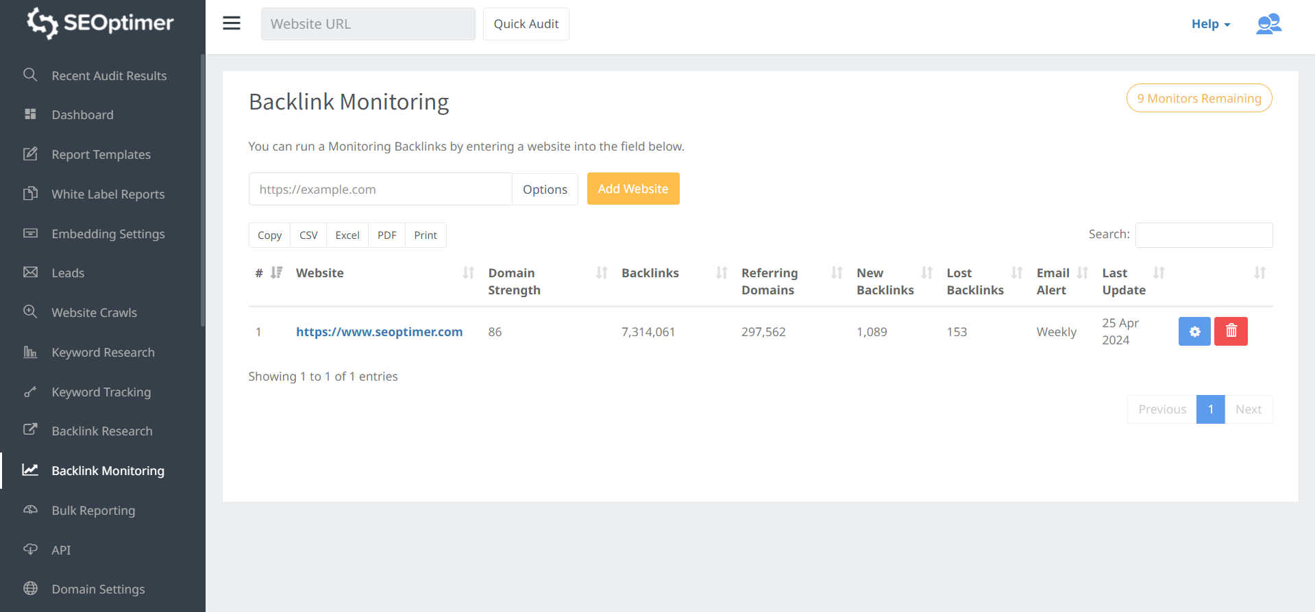 - Dodaj adresy URL swoich konkurentów do SEOptimer i zacznij śledzić ich linki zwrotne.