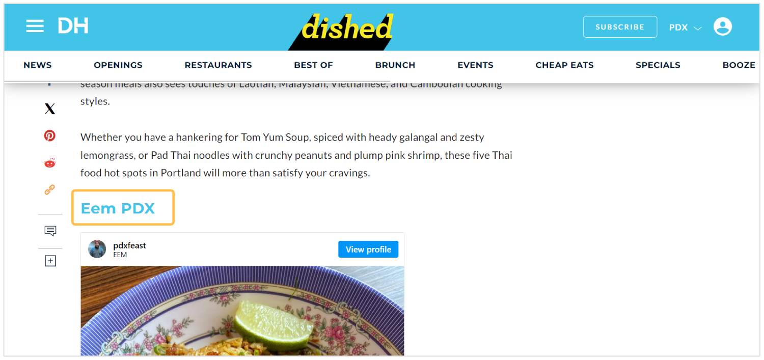 Na przykład, na tej liście najlepszych tajskich restauracji w Portland, Oregon, każda wymieniona restauracja otrzymuje kontekstowy link zwrotny: