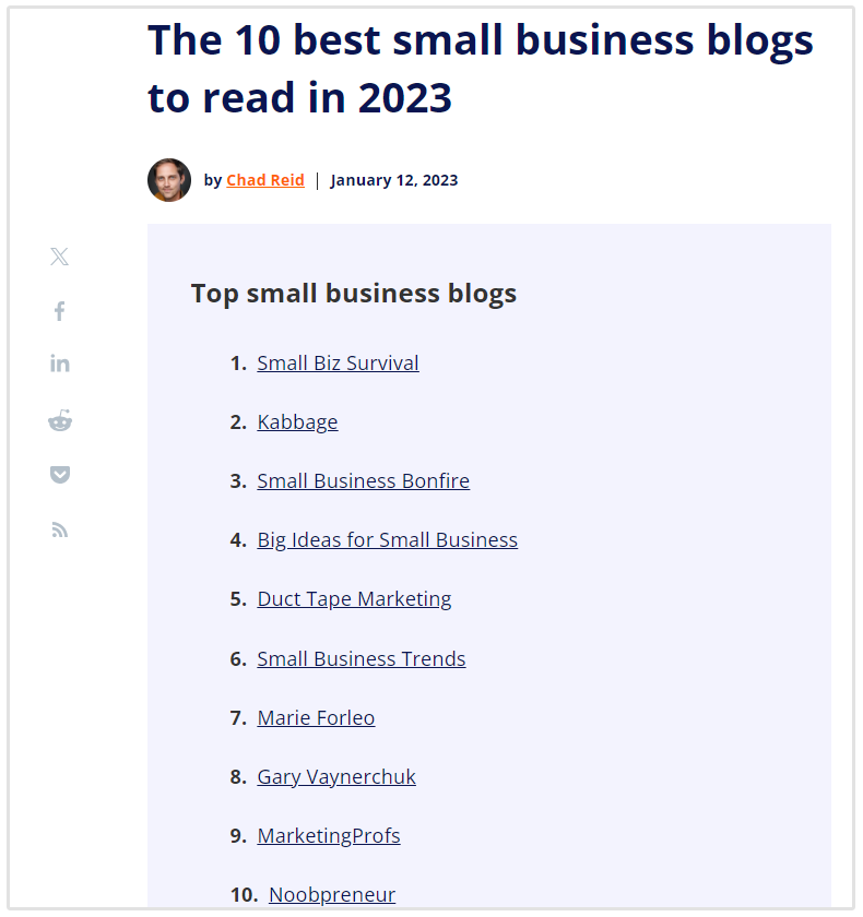 Na przykład, Jotform ma wpis na blogu, w którym wymienia 10 najlepszych blogów dla małych firm: