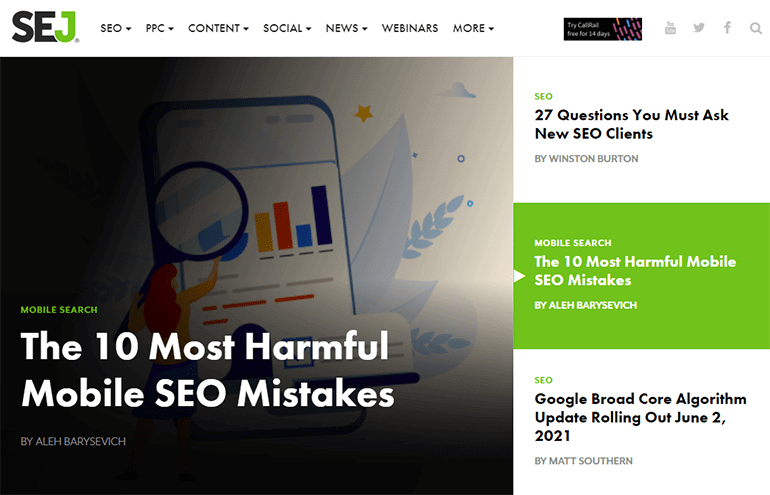 SEJ jest niezbędnym źródłem informacji dla każdego, kto działa w branży agencji marketingowych. Z podziałem na sub-specjalizacje SEO, kanały mediów społecznościowych i poziom ekspertyzy SEO, znajdzie się tu coś dla każdego. Ponieważ publikują tak dużo i tak często, sztuką wykorzystania tego bloga jest przeglądanie treści, które są najbardziej istotne dla twojej agencji kreatywnej. Na przykład, treści bloga agencji marketingowej specjalnie dla kancelarii prawnych mogą być dla niektórych zbyt niszowe. Ale kiedy znajdziesz podtemat, który odpowiada potrzebom twojej firmy, SEJ jest świetnym miejscem na istotne, praktyczne sugestie, które nie wymagają dużo czasu na przeczytanie.