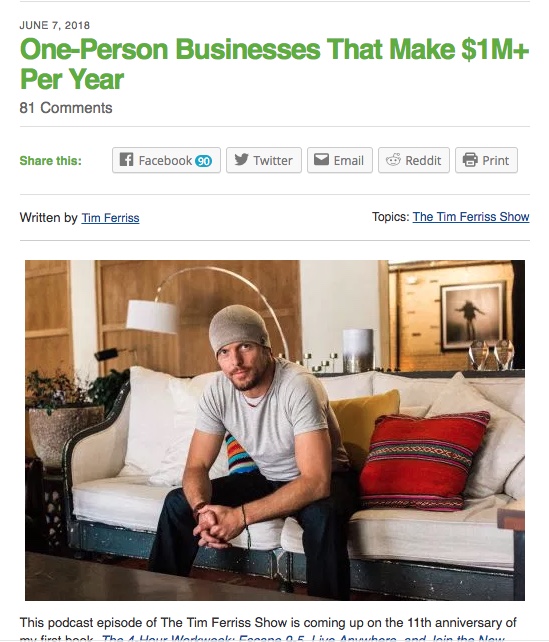 Osobiście nigdy wcześniej nie widziałem posta o jednoosobowych działalnościach, które zarabiają ponad milion dolarów rocznie.