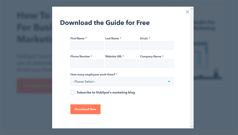 W tym przykładzie, HubSpot i LinkedIn stworzyli przewodnik LinkedIn dla Biznesu i Marketingu, który jest zabezpieczony za pomocą poniższego formularza: