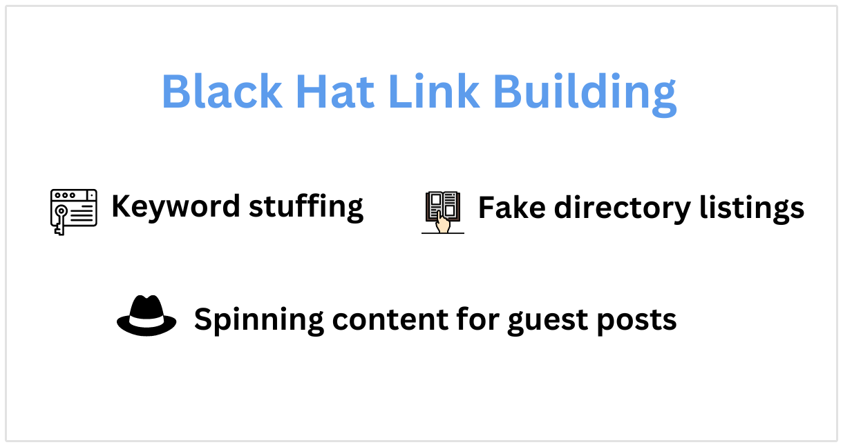 Black hat SEO to każda typowa spamerska taktyka SEO, która ma na celu oszukanie wyszukiwarek, aby nagrodziły stronę wyższymi pozycjami. Obejmuje to sztuczki takie jak: