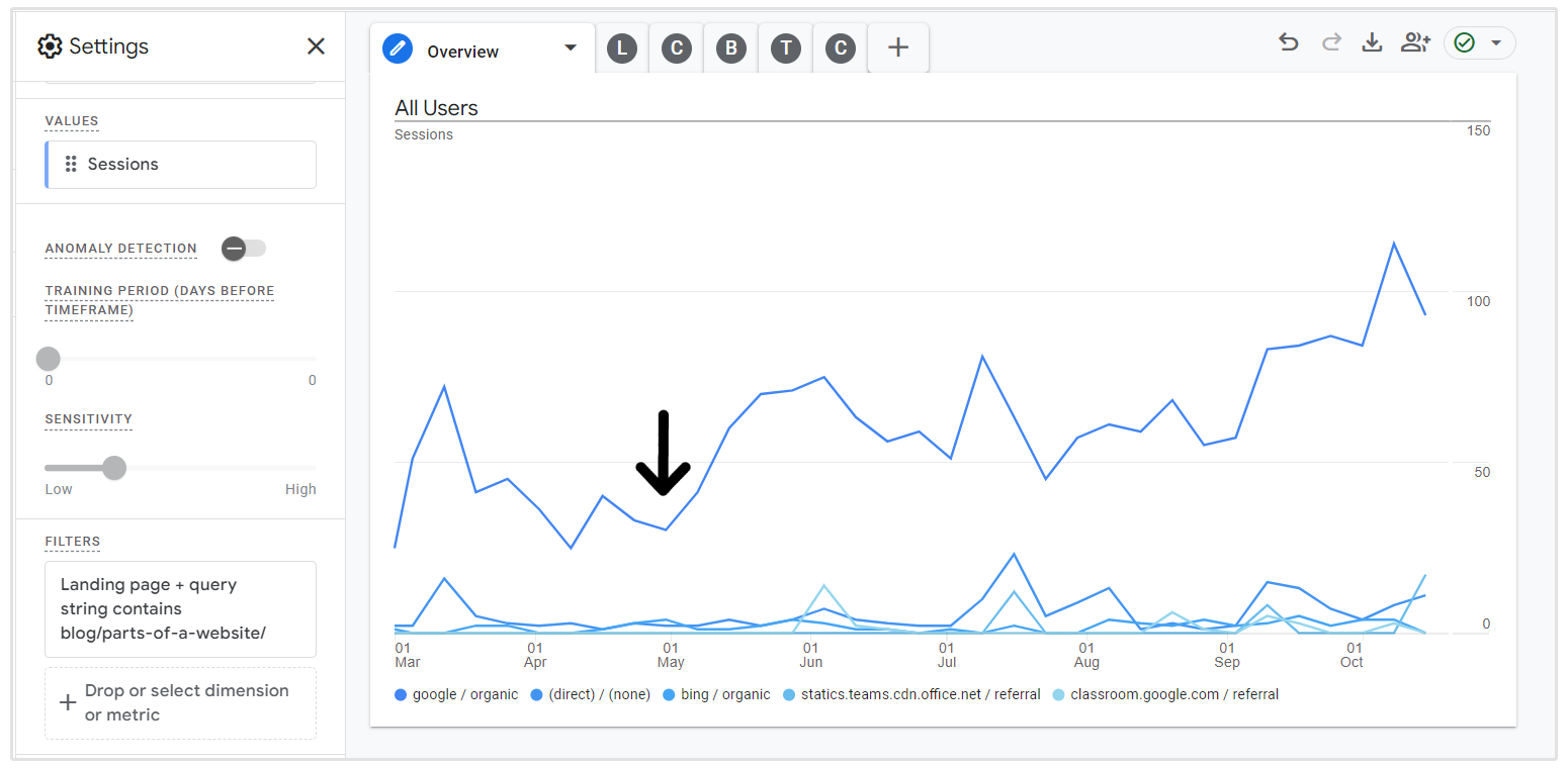 Śledź zmiany w ruchu na stronie internetowej związane z odświeżoną treścią. Zwróć uwagę na liczbę wyświetleń strony, unikalnych użytkowników oraz ogólny ruch na stronie w Google Analytics, ponieważ daje to bardzo dokładny obraz tego, jak Twoje zmiany wpłynęły na kluczowe wskaźniki.