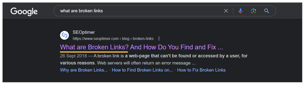 Zoptymalizuj tytuł pod kątem SEO, umieszczając ważne słowa kluczowe blisko początku i używając naturalnego języka. Na przykład, dla naszego artykułu o niedziałających linkach, dodaliśmy docelowe słowo kluczowe "Co to są niedziałające linki" na początku tytułu.