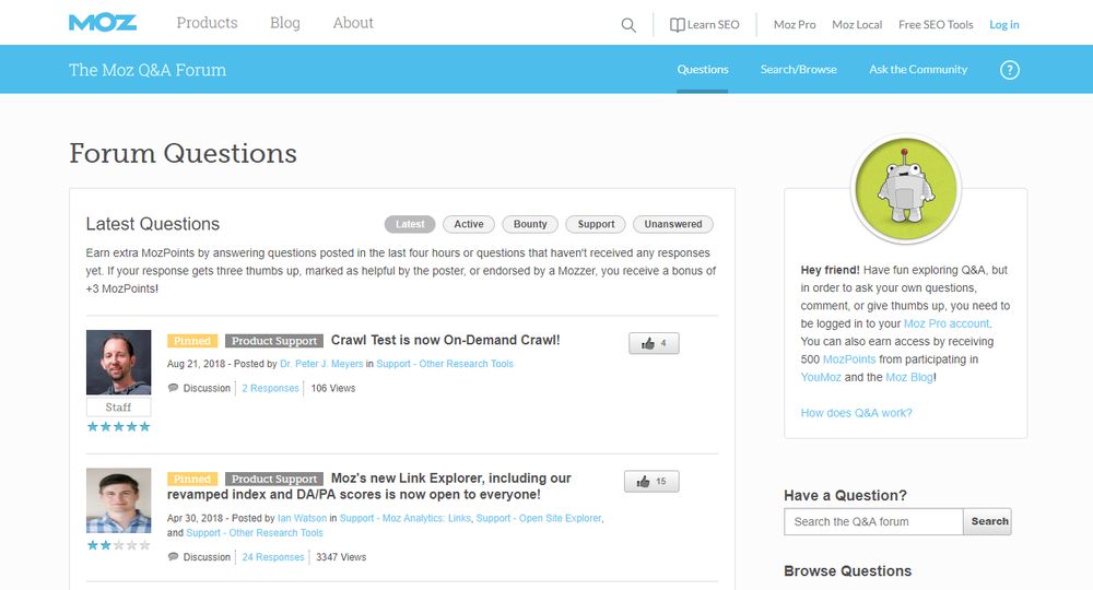 Przynależność do społeczności dodaje również dodatkową wartość dla Twoich klientów. Jest to szczególnie prawdziwe, jeśli prowadzisz działalność w branży wiedzy. Rady od rówieśników, nowe kontakty i możliwości nawiązywania sieci kontaktów są obecnie uważane za niezwykle cenne. Poczucie przynależności dodatkowo zwiększa zaufanie klientów do Twojej marki i sprawia, że promują oni Twoją stronę internetową wśród swoich znajomych. Możesz prowadzić swoją społeczność na własnej stronie internetowej lub używać zewnętrznych narzędzi takich jak Grupy na Facebooku czy LinkedIn. Na przykład, oto jak wygląda społeczność SEO Moz.com, która jest hostowana na ich własnej domenie: