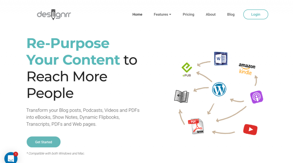 Designrr – logo (190px na 60px) nadal jest uważane za logo średniej wielkości. Chociaż logo wygląda na mniejsze w porównaniu do innych wymienionych powyżej. Projekt skupia się na treści i kreacji. Zobacz poniżej.