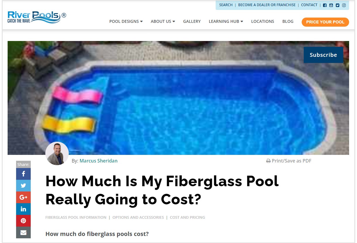 When his pool company was struggling, Marcus Sheridan started to publish original content on his website like “Ceny basenów z włókna szklanego: Ile naprawdę będzie kosztować mój basen?”