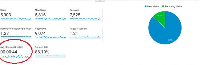 - Jak długo goście spędzają na Twojej stronie internetowej? Jeśli większość odwiedzających opuszcza Twoją stronę kilka sekund po przybyciu, to nie jest dobry znak. Jako ogólną zasadę lubię widzieć średni czas spędzony na stronie wynoszący 30 sekund lub kilka minut. To sugeruje, że odwiedzający są zainteresowani tym, co widzą. Te informacje można również znaleźć w Google Analytics.