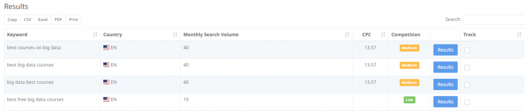 Na przykład, jeśli studenci wyszukują frazę ‘najlepsze kursy college'u dotyczące big data’, prawdopodobnie szukają listy najlepszych kursów do podjęcia oraz uniwersytetów, które je oferują.