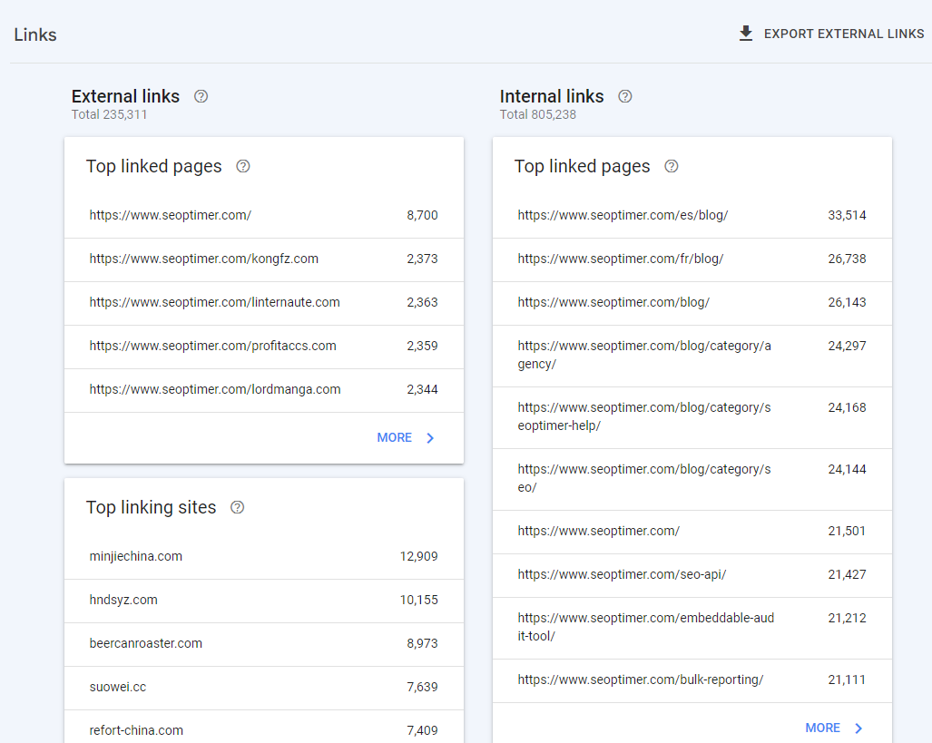 Google Search Console ma sekcję poświęconą linkom zwrotnym, przejrzyj je i zobacz, czy znajdziesz jakieś spamerskie linki zwrotne.