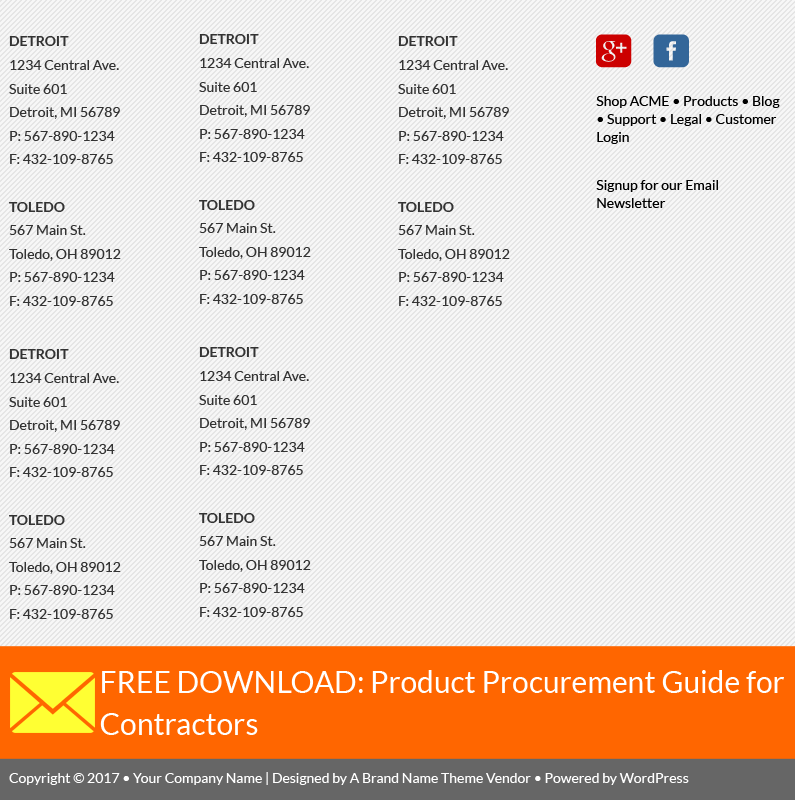 Jeśli Twoi użytkownicy chcą się z Tobą skontaktować, na przykład dodanie tych informacji ułatwi im to zadanie bez konieczności spędzania więcej czasu na szukaniu numeru Twojej firmy. Stopka pozwala również na dodanie więcej informacji takich jak prawa autorskie i zastrzeżenia.