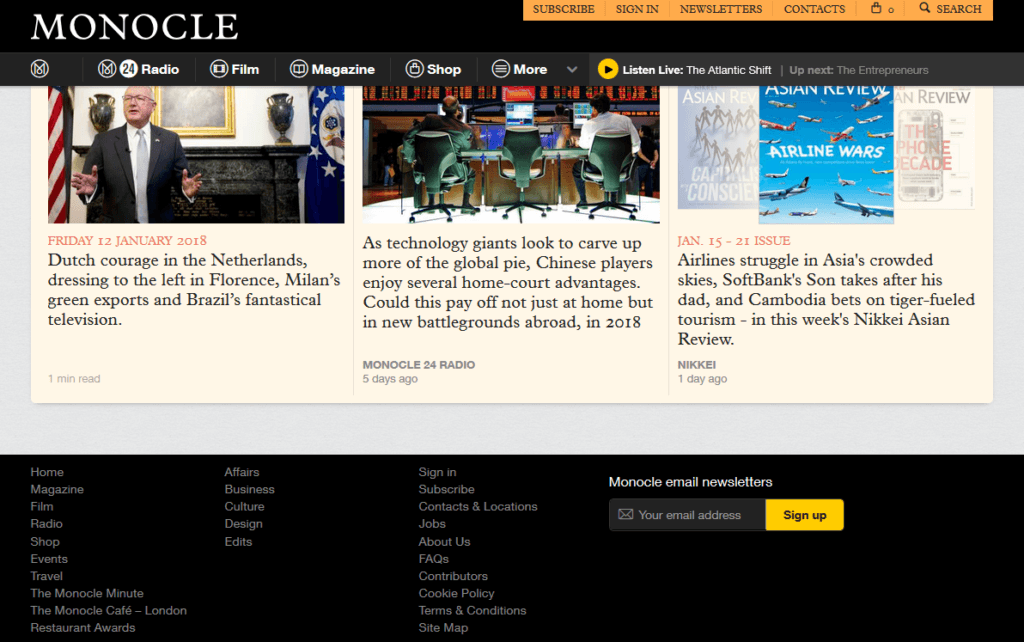 Nie chcesz mieć więcej niż jednego CTA w stopce, na przykład ‘zobacz naszą demonstrację’ oraz ‘zapisz się do naszego newslettera’ jak w przykładzie strony naszych produktów. Link do demonstracji może nie być odpowiedni na wszystkich stronach. CTA powinno pozostać jak najbardziej ogólne.