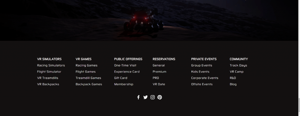 Oto przykład, jak firma Hubneo, zajmująca się salonami gier VR, zorganizowała swoją stopkę, aby zapewnić różne usługi i informacje: