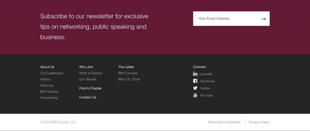 W tej sytuacji, ponieważ stopka będzie dostępna ze wszystkich stron na Twojej witrynie, możesz chcieć uniknąć umieszczania kolejnego wezwania do działania (CTA) w stopce. Alternatywnie, zrób CTA ogólne, na przykład, ‘zapisz się do naszego newslettera’.