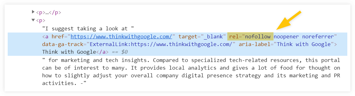 Z drugiej strony, jeśli chcesz zlecić Google, aby nie przywiązywało wartości do linku, stosuje się atrybut „nofollow”: