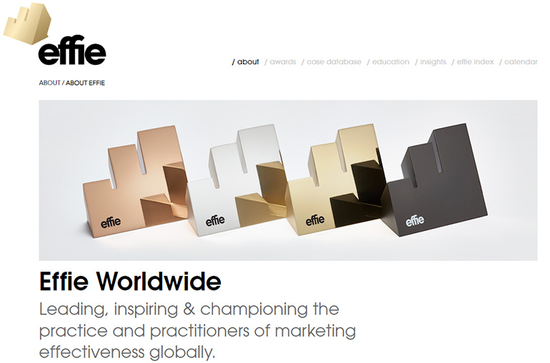 The Effies (skrót od skuteczności) sięgają złotej ery reklamy w latach 60. Dzisiaj, The Effies świętują wszystkie formy marketingu, które przyczyniają się do sukcesu marki. Z ponad 50 programami na całym świecie, The Effies honorują agencje i osoby tworzące najskuteczniejsze prace na całym globie.