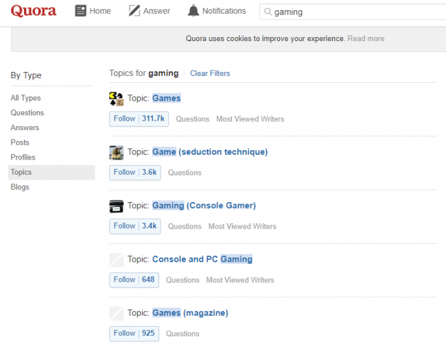 Quora'da Konular sekmesini kullanarak aynısını yapabilirdim: