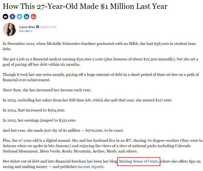 Sadece bu haber yazısına bir göz atın, Forbes'ta Making Sense of Cents adlı kişisel finans blogunun üzerine: