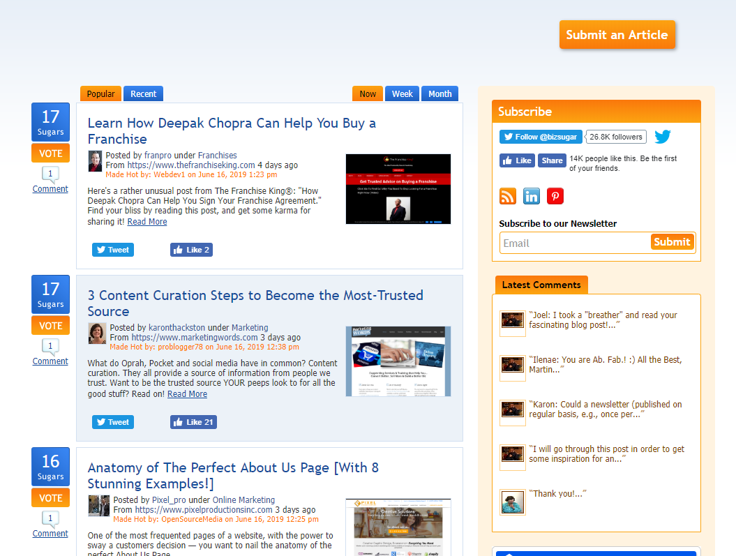 BizSugar, içerik paylaşımı ve yayma platformudur. Bu durumda, platform küçük işletme nişine özgüdür.
