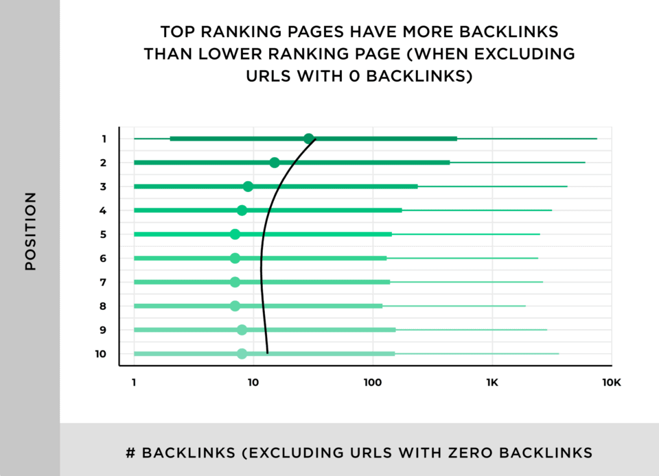 Backlinko'dan Brian Dean, bir milyondan fazla Google arama sonucunu analiz etmek için bu kadar ileri gitti. Aynı sonuca vardı: Bir sayfaya olan backlink sayısı, onun arama motoru sıralamasıyla ilişkilidir.