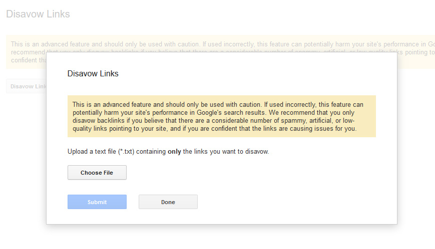 Bu, backlink profilinizde bulduğunuz tüm zararlı bağlantıların bir reddetme dosyası oluşturarak ve ardından bu bağlantı sinyallerini değersizleştirmek için dosyayı Google'ın Reddetme Bağlantıları Aracı'na göndererek yapılır.